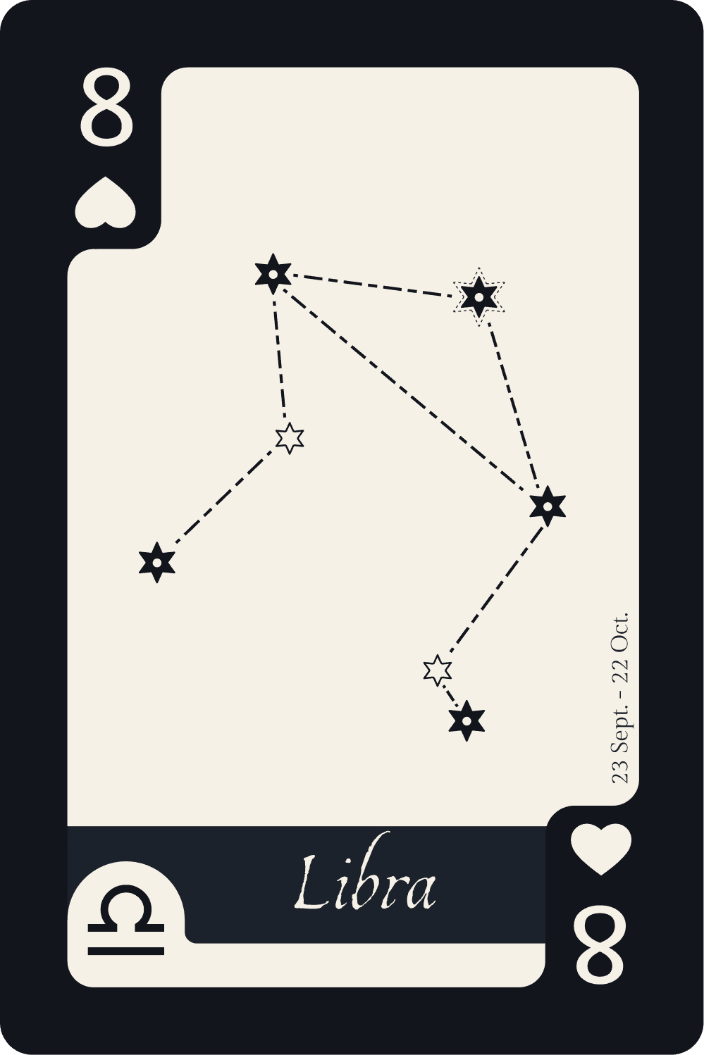 It features all 12 zodiac signs and their respective star chart. What I realised with the Christmas cards is that it impacts gameplay a lot to have the black and red signifiers. For the ace I decided to put the horoscope chart.