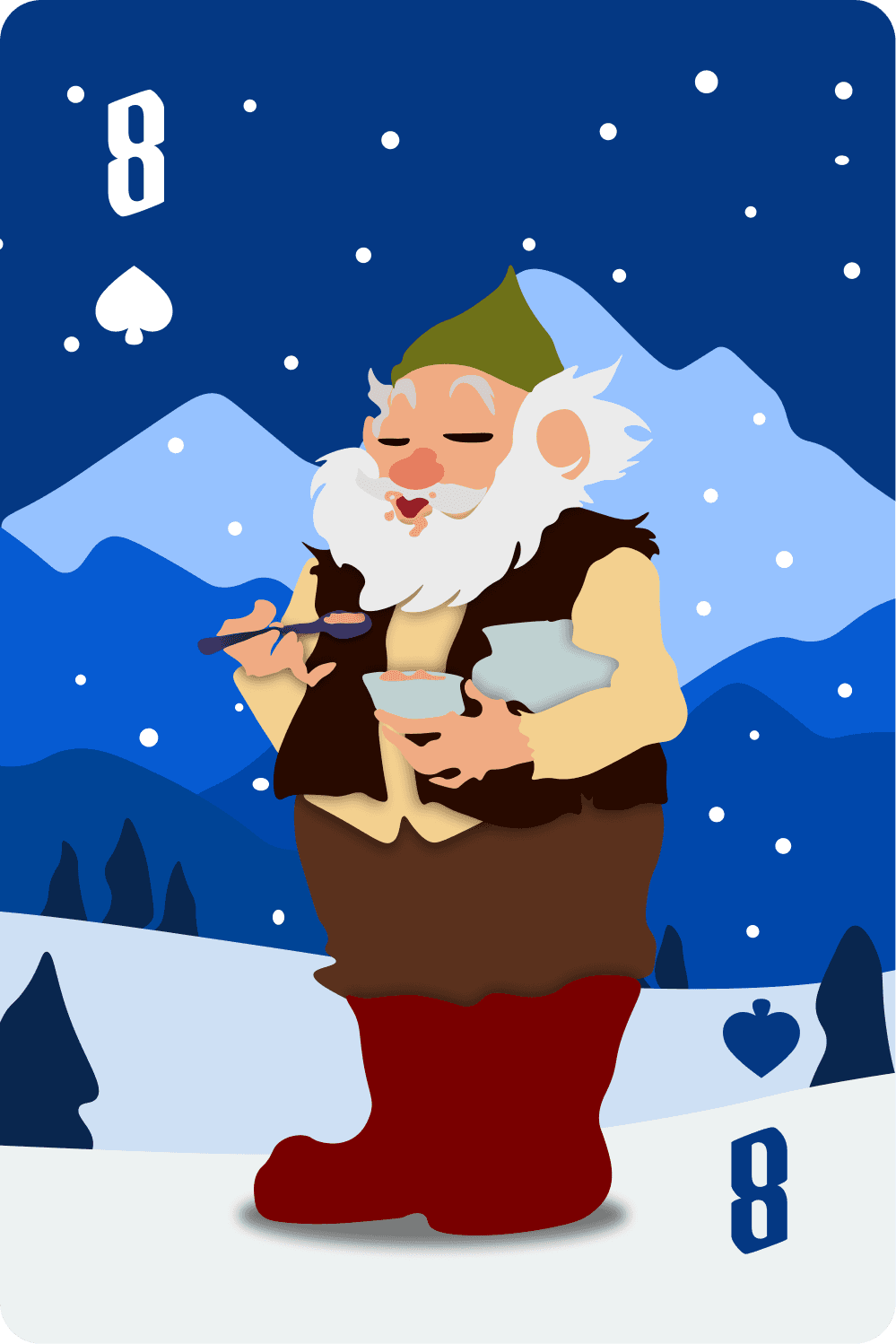 The illustrations were done by Gizem for a calendar, they were then reused and recoloured for them to pop more. The deck features all 13 yule lads as well as the Christmas cat as the joker.