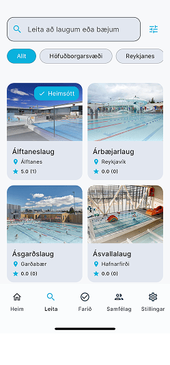 Haltu utan um sundlaugar sem þú hefur heimsótt, uppgötvaðu nýja staði og sjáðu hvernig vinir þínir eru þegar kemur að sundlaugamenningu Íslands.
